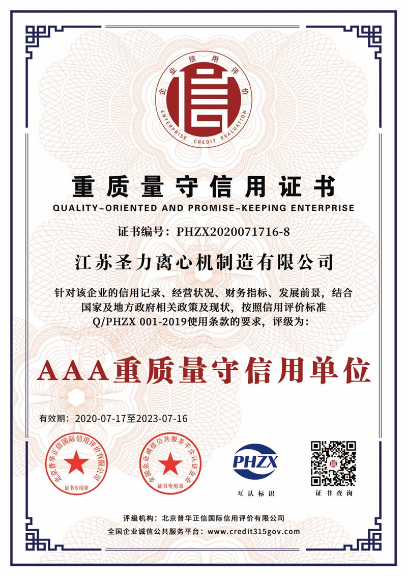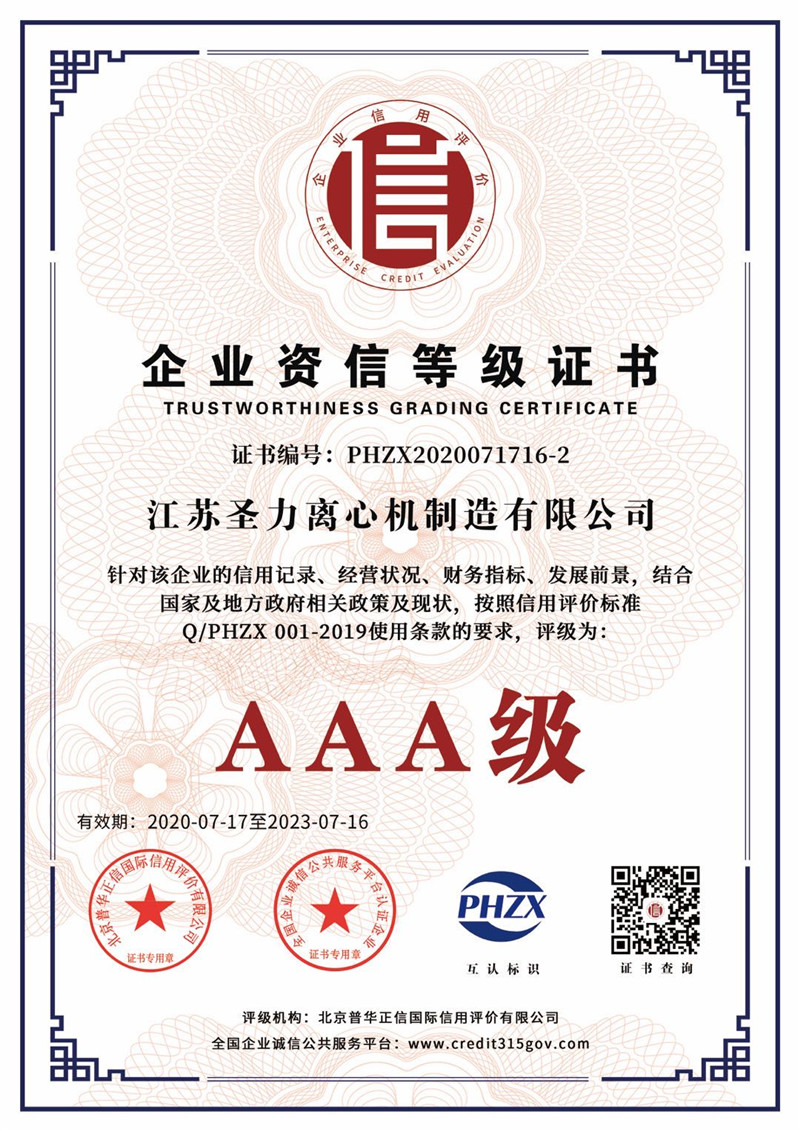 江蘇圣力離心機(jī)制造有限公司是國內(nèi)分離機(jī)械行業(yè)中主要的離心機(jī)生產(chǎn)企業(yè),對(duì)離心機(jī)的研究、設(shè)計(jì)、制造有多年的歷史,擁有齊全的設(shè)備、完善的檢測手段。公司已通過IS09000國際質(zhì)量體系認(rèn)證、ISO14001環(huán)境管理體系認(rèn)證、ISO45001:2018職業(yè)健康安全管理體系認(rèn)證和CE認(rèn)證,是江蘇省高新技術(shù)企業(yè),曾榮獲國家和地方多項(xiàng)榮譽(yù)稱號(hào)。